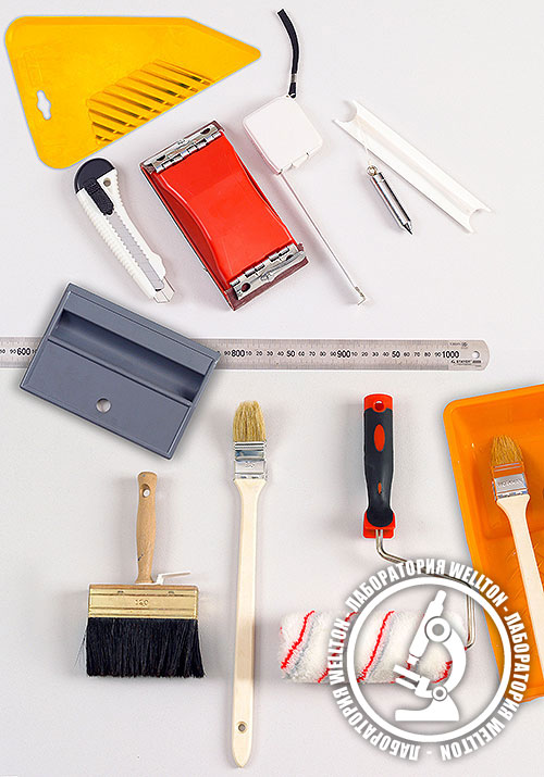 Для работы со стеклотканевыми обоями и малярными стеклохолстами Вам потребуется обычный инструмент: