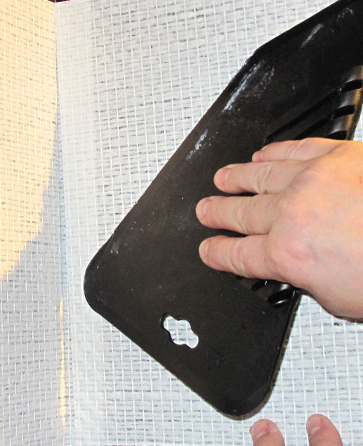 Последующие операции по наклеиванию выполняются так же, как и при работе со стеклотканевыми обоями с простым рисунком.