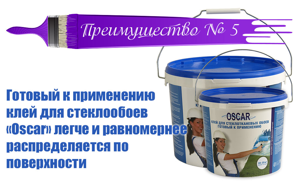- благодаря латексной основе готовый клей Oscar легко распределяется по поверхности, без проскальзывания валика;