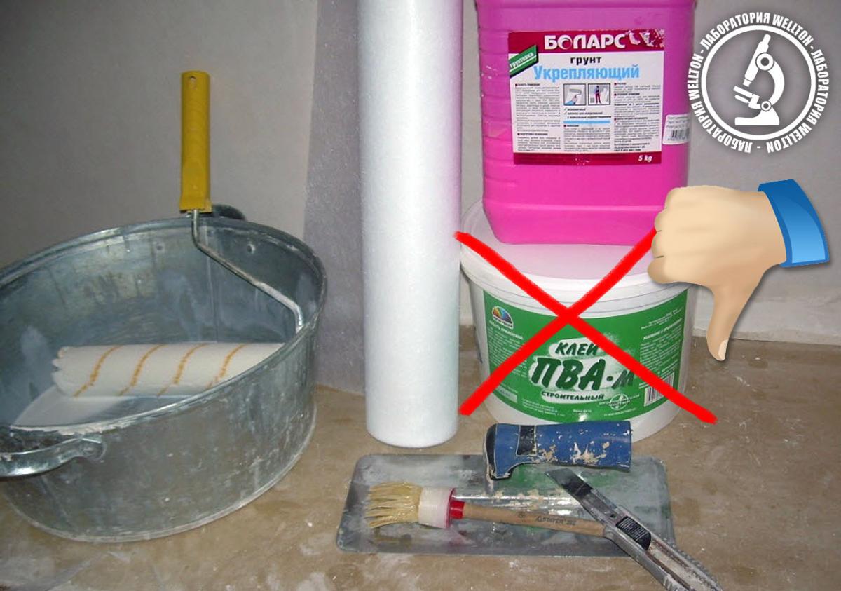 Горячо любимый различными шабашниками клей ПВА, конечно, клеит крепко. Если использовать его по назначению: склеивать картон, ремонтировать деревянную мебель, подклеивать старые книги. Но добавлять его в бетон, в различные строительные смеси или смешивать с обойным клеем – категорически запрещено. Причём информация о том, что ПВА можно добавлять в различные строительные смеси просочилась даже на Википедию, что лишний раз доказывает, что нельзя верить всему, что можно прочитать в интернете. Дело в том, что клей ПВА (поливинилацетат) после застывания (высыхания) создаёт почти полностью непроницаемую для воздушных паров плёнку! Если вы ремонтируете стулья, или реставрируете книги, большой беды в этом нет. А вот для обоев такая клеевая плёнка может стать просто губительной.