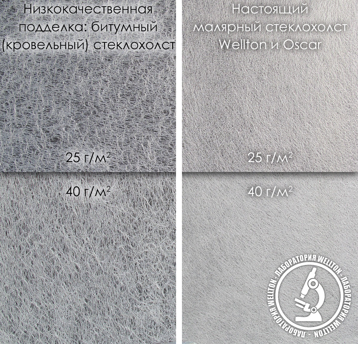 Зная эти простые моменты, вы легко сможете отличить подделку от настоящего малярного стеклохолста и сделать ремонт в своём доме с использованием только натуральных материалов Wellton и Oscar, предназначенных для выполнения работ по высококачественной внутренней отделке.