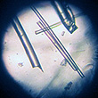 Такие сравнения в корне неверны, поскольку не только сами материалы, но и процессы их производства принципиально различаются. Следуя народной мудрости, мы решили наглядно продемонстрировать вам кардинальное различие между стеклотканевыми обоями и стекловатой, используя современную оптическую технику — профессиональный микроскоп. Для исследования нами были отобраны 5 образцов стекловаты различных производителей и 4 образца стеклонити от стеклотканевых обоев Wellton производства Швеции и Китая (по две нити утка и основы). Исследование образцов проводилось в лабораторных условиях при увеличении Х200. Даже при таком относительно небольшом увеличении все отличия этих материалов настолько явно видны, что при просмотре изображений не требуется комментариев.